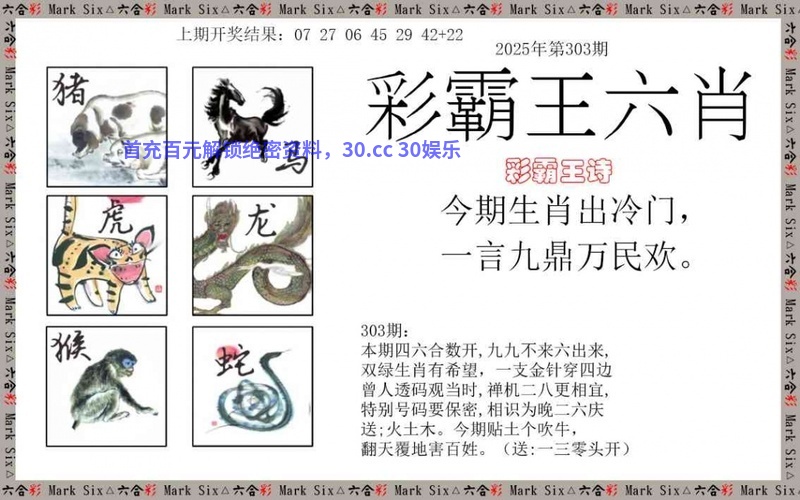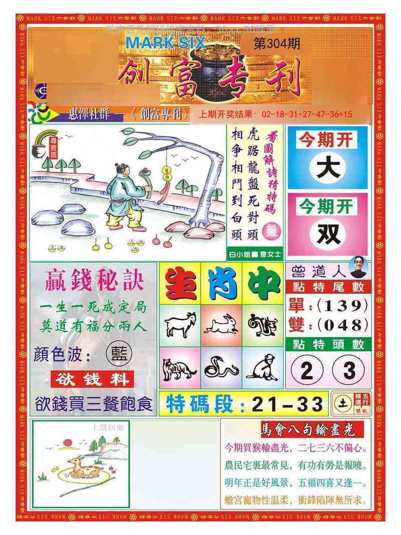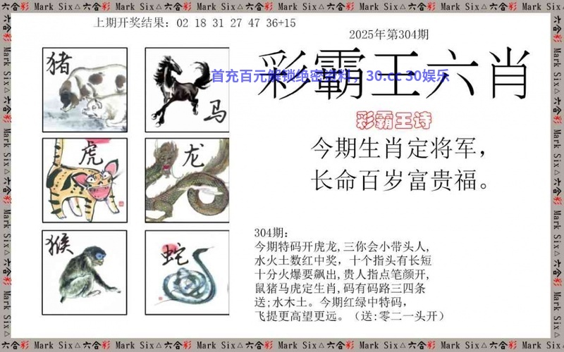 304期:正版创富网:今期生肖定将军,长命百岁富贵福