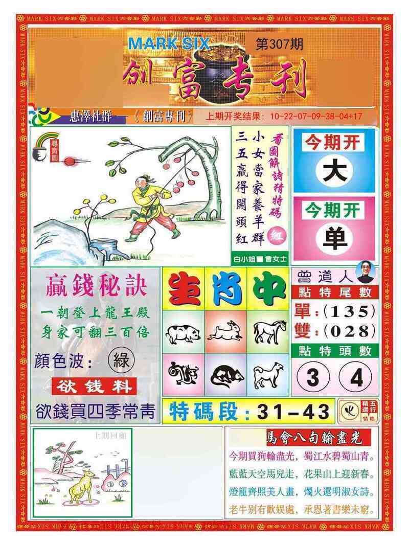 306期:正版创富网:三四组合中头彩,双数重下可防红